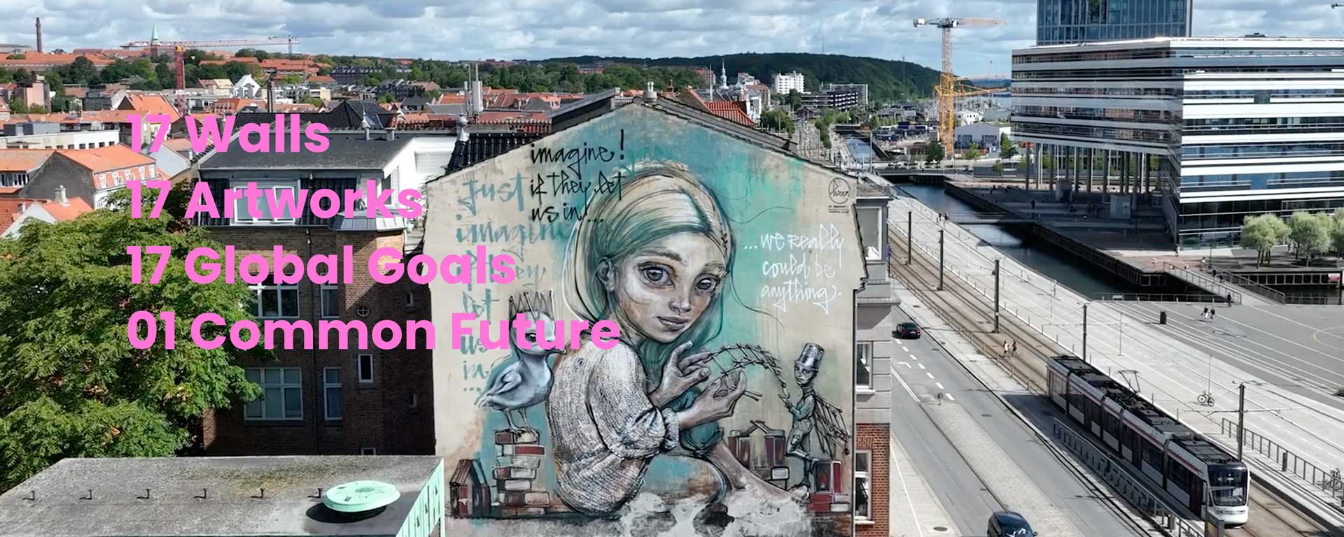 17 walls: On a 5 km mapped walk in central Aarhus you get to experience 17 mural paintings by different artists. Each painting symbolizes one of UNs sustainable development goals. You can do the walk on your own or in groups following the guidance which works best on a smartphone*. There will be QR-codes with story and details at each mural.